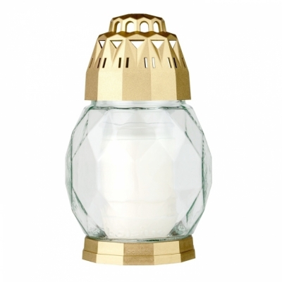 DetailHřbitovní lucerna skleněná Diamant zlatá 24 hod (výška 180 mm, šířka 110 mm)