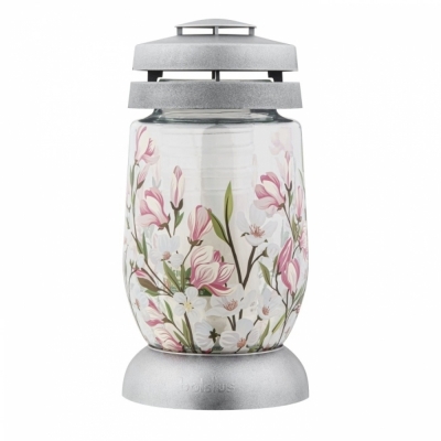DetailHřbitovní lucerna skleněná Magnólie stříbrná 36 hod (výška 235 mm, šířka 110 mm)