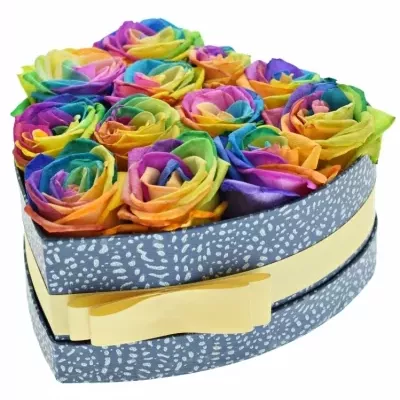 Krabička duhových růží RAINBOW šampaň 19x9cm