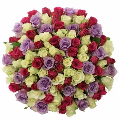 Kytice 100 míchaných růží PURPLE RAIN 50cm