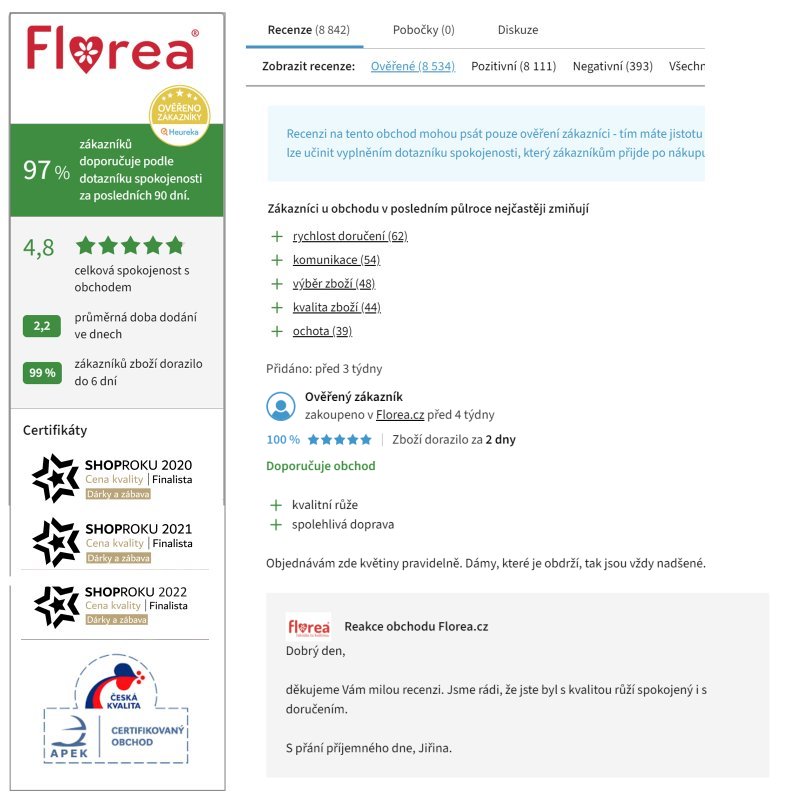 Objednávku s vámi rádi vyřešíme i osobně. Stačí nám v pracovní době (Ne–Pá 8:00–21:00, So 9:00–17:00) zavolat na +420 723 350 000 nebo napsat na e-mail obchod@florea.cz a společně vybereme pro obdarovanou osobu tu nejlepší možnou kytici. A pomůžeme samozřejmě i s čímkoli jiným.